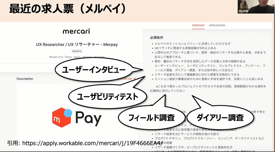 このように正しいUXを見つめている企業が増えていると感じます。例えば、メルペイの求人票だと、