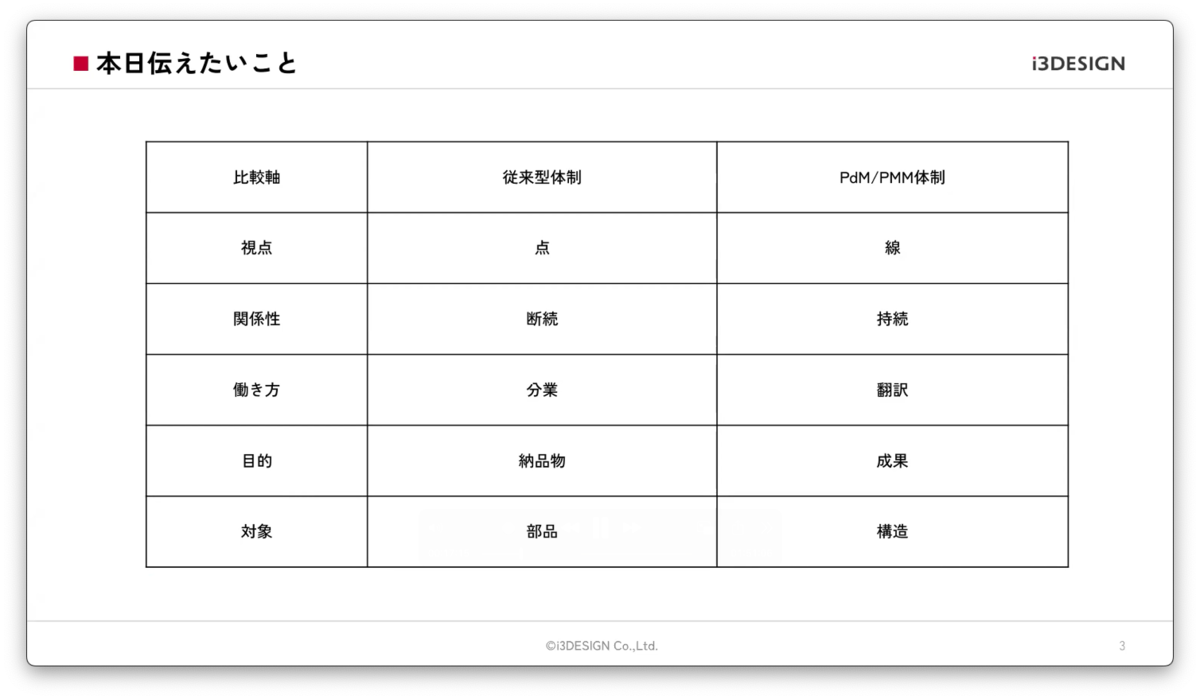 吉澤:本日、皆さんにお伝えしたいことは「PdM/PMM体制とは何で、どう機能するのか」です。