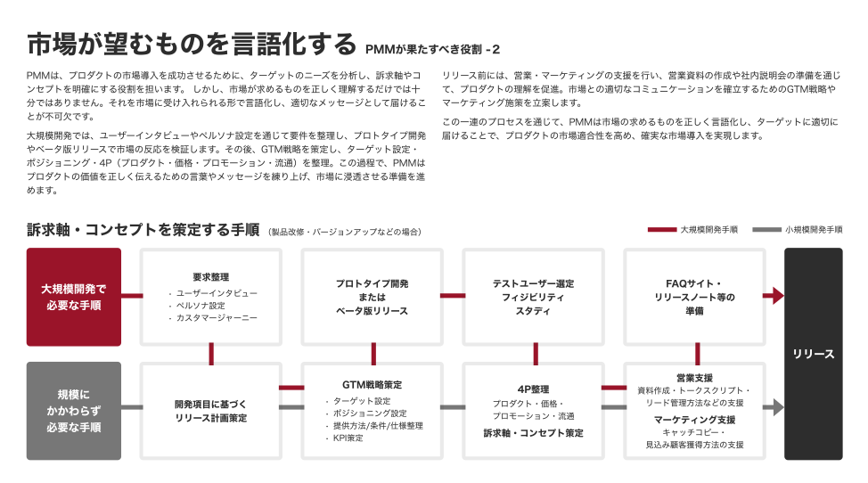 PMMの2つ目の役割は、市場が求めるものをプロダクトに落とし込み、言語化することです。