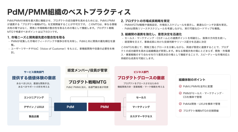 PdM/PMM体制は、プロダクトを成長させるための要です。多くの企業がその重要性を認識しながらも、うまく体制を構築できていないのが現状です。